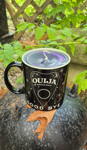 The Spirit Board Mug Candle has a scent of our house blend 'Ancestors' with earthy scents of oud, leather and Patchouli and you can reuse the Mug for a cup of Pumpkin spice after the candle is spent!